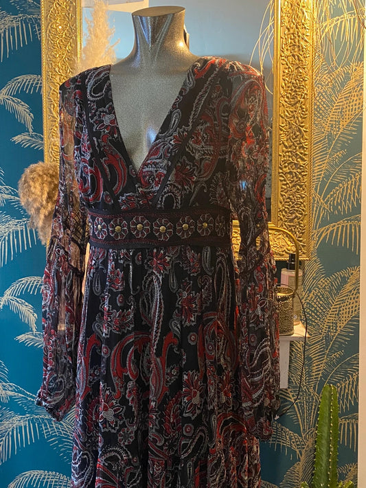 Robe bohème, longue avec voile col v , taille S